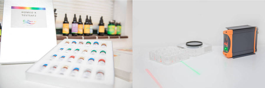 - Substanzen wie z.B. Kräuter, Vitamine, Mineralstoffe können dem Körper präsentiert werden durch das Einschwingen der mittelspezifischen Frequenzen. Somit kann beispielweise eine Über- oder Unterreaktion harmonisiert bzw. eine Ausleitung bestimmter Stoffe angeregt werden.